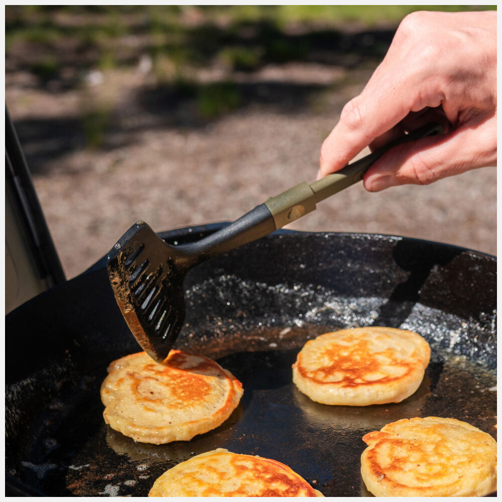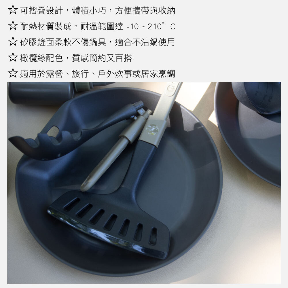 ・矽膠鏟面柔軟不傷鍋具,適合不沾鍋使用